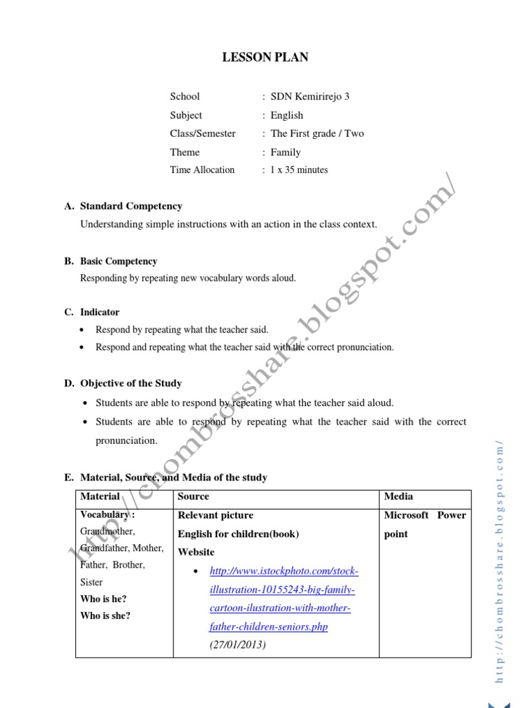 Contoh Lesson Plan Speaking Part I Dalam Bahasa Inggris Beserta Arti Lengkap Hallo sahabat KBI bagaimana kabarnya hari ini. 1 x 35 Standard Competence. Contoh Lesson Plan Full English LESSON PLAN.